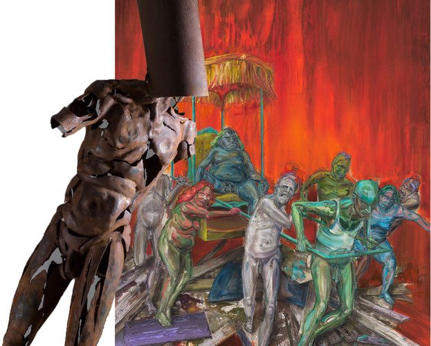 In der Doppelschau von Undine Bandelin und Dana Meyer treffen Stahlskulpturen auf Malerei und formen gesellschaftliche Allegorien von großer Präsenz.
